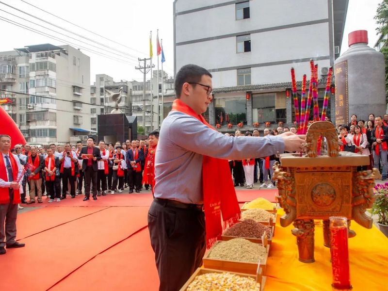 上午10時18分,祭酒神活動正式開始,福建雙龍戲珠酒業(yè)有限公司董事長黃德鋒、總經(jīng)理黃盛堯帶領公司領導向酒神像上香祈福。