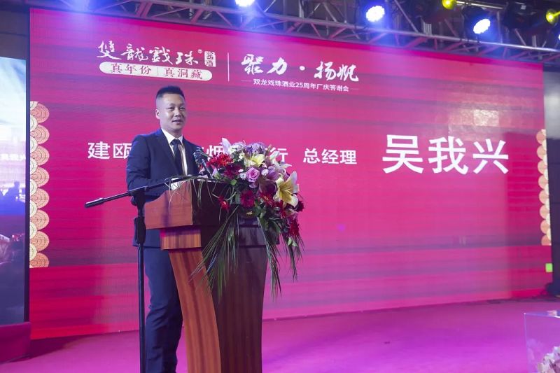 群友煙酒商行總經(jīng)理吳我興代表各位合作商和廣大消費(fèi)者對雙龍戲珠酒業(yè)25周年廠慶表示祝賀。他表示,雙龍戲珠酒業(yè)是出色的白酒生產(chǎn)商,更是一個優(yōu)秀的合作伙伴,是經(jīng)銷商強(qiáng)有力的后盾。