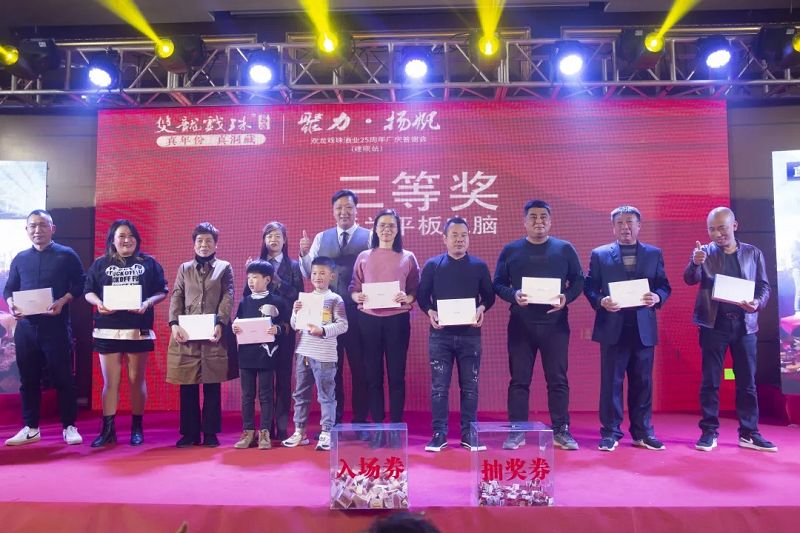 25周年廠慶答謝宴又怎么少的了激動人心的抽獎環(huán)節(jié),作為建甌站最后一場答謝宴活動,今晚再次誕生一位特等獎得主。自廠慶活動開始以來,已有5位幸運(yùn)者獲得49999元現(xiàn)金大獎,現(xiàn)場更有10克雙龍戲珠金條、5L雙龍戲珠1953洞藏窖酒、華為平板電腦等眾多好禮回饋。