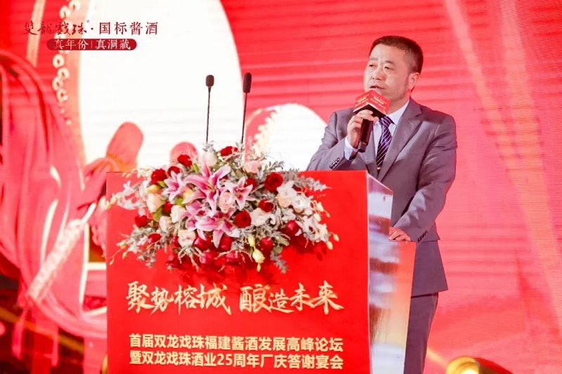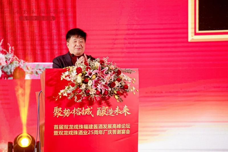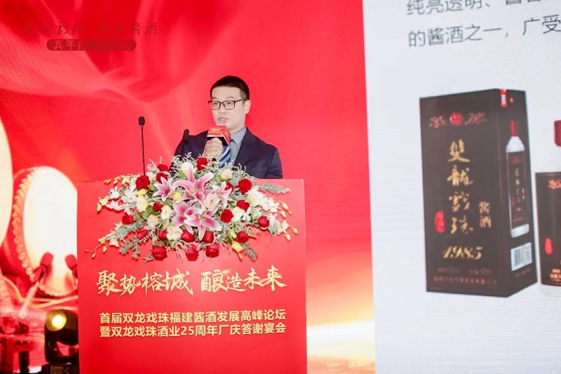 2021年1月8日晚,福建雙龍戲珠酒業(yè)有限公司董事長黃德峰、中國酒類流通協(xié)會會長助理吳勇,國家白酒評委、四川釀酒研究所技術(shù)中心主任黃志瑜,知名白酒營銷專家楊承平,諫策咨詢聯(lián)合創(chuàng)始人司勝軍以及福建各地的主流酒商、核心消費者800余人共聚福州梅園國際大酒店,回顧建甌千年釀酒史、見證企業(yè)傳奇發(fā)展史、展望雙龍戲珠傳世新篇章。
