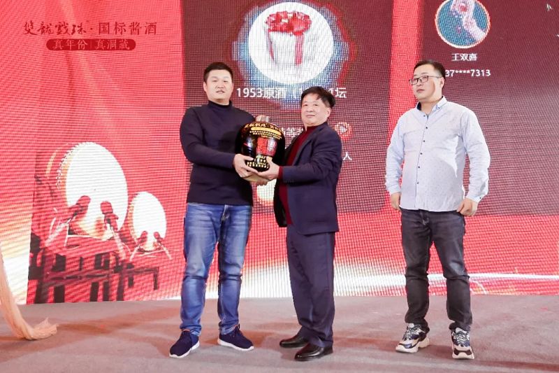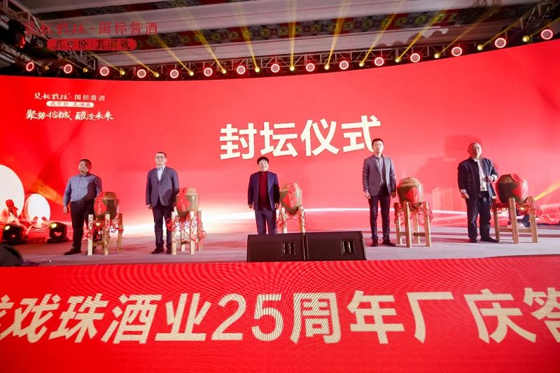 現(xiàn)場舉行了封壇儀式,眾位領(lǐng)導(dǎo)、嘉賓共同上臺,將對雙龍戲珠的美好祝愿珍藏在至臻美酒中。