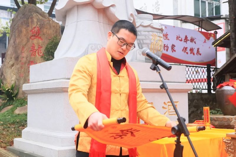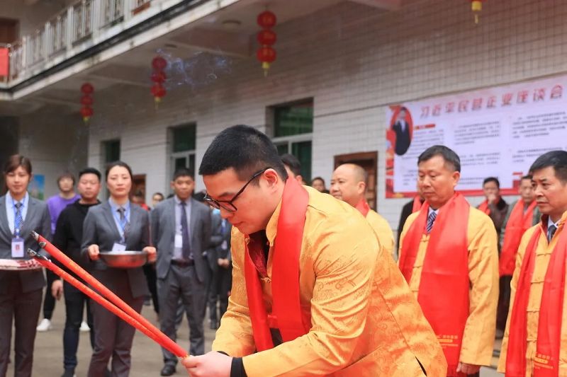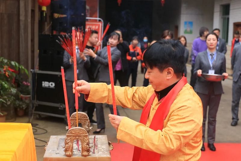 上午9:09,祭祀儀式正式開(kāi)始,雙龍戲珠酒業(yè)總經(jīng)理黃盛堯誦讀祭文,隨后,雙龍戲珠酒業(yè)董事長(zhǎng)黃德鋒帶領(lǐng)公司高管凈手、上香,祈愿風(fēng)調(diào)雨順、五谷豐登。