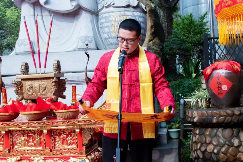 隨著吉時到來,現(xiàn)場人頭攢動、鑼鼓震天,祭祀儀式正式開始。大典上,雙龍戲珠總經(jīng)理黃盛堯誦讀祭文,隨后,雙龍戲珠酒業(yè)董事長黃德鋒帶領(lǐng)公司高管凈手、上香祭拜先祖,以虔誠之心祈愿風(fēng)調(diào)雨順、五谷豐登、國泰民安。