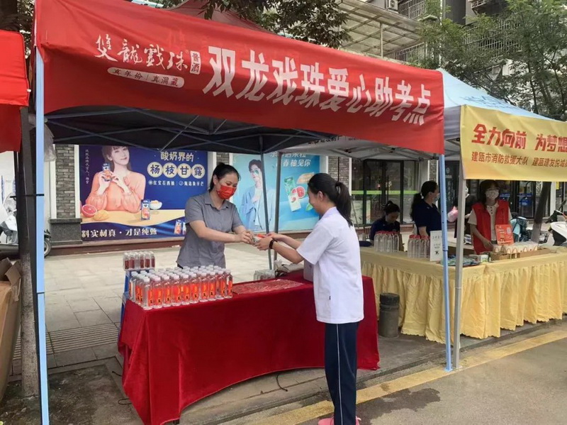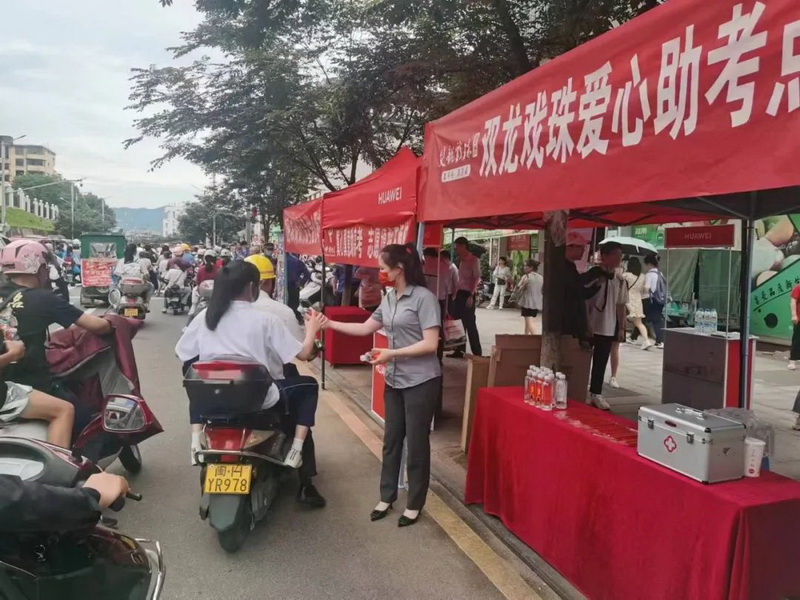 雙龍戲珠酒業(yè)早早來到了高考點(diǎn),在考點(diǎn)外搭建“愛心助考”服務(wù)站,拉起橫幅標(biāo)語為考生們加油鼓勁,并準(zhǔn)備了免費(fèi)礦泉水、一次性口罩、應(yīng)急藥品等物資,供考生和家長免費(fèi)領(lǐng)取。