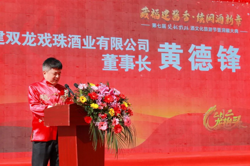 隨著領(lǐng)導(dǎo)嘉賓完成簽到、入座,“第七屆雙龍戲珠酒文化旅游節(jié)暨洞藏大典”正式開幕。福建雙龍戲珠酒業(yè)有限公司董事長黃德鋒首先致開幕辭,黃董事長表示,我們今后發(fā)展的道路會遇到這樣、那樣的困難。但是我們用至誠真心,釀最好美酒的初心不變,我們與參與者共享發(fā)展成果的初心不變,我們公司發(fā)展對社會有利的初心不變。