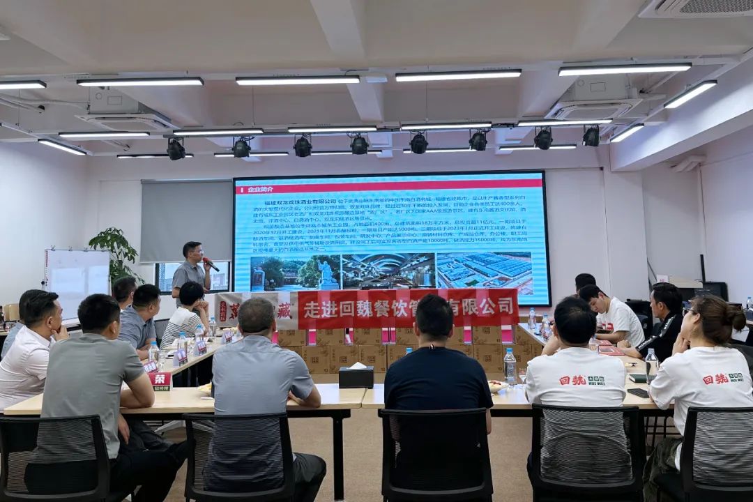 福建回魏餐飲管理有限公司董事長魏清壽對雙龍戲珠酒業(yè)一行的到來表示歡迎,他表示,與雙龍戲珠酒業(yè)的戰(zhàn)略合作充滿了期待,將秉持資源共享、優(yōu)勢互補(bǔ)的原則,通過各自在行業(yè)中的優(yōu)勢,打通高端圈層,進(jìn)行更深層次的務(wù)實(shí)合作,在謀求攜手共贏的道路上行穩(wěn)致遠(yuǎn)。隨后帶領(lǐng)大家一起參觀了解回魏企業(yè),座談會上,向大家介紹了回魏企業(yè)的發(fā)展歷程、業(yè)務(wù)范圍、集團(tuán)規(guī)模、企業(yè)文化等情況。