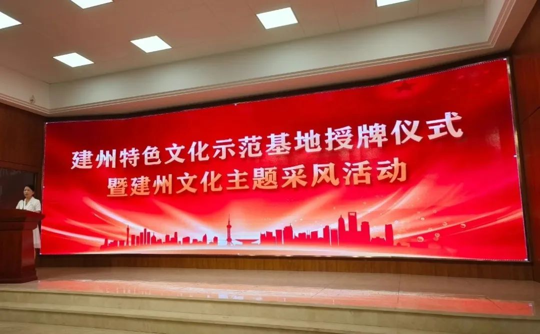 活動現(xiàn)場,由市委常委、宣傳部部長葉華為建州特色文化示范基地授予福建省新時代特色文藝示范基地牌匾,福建雙龍戲珠酒業(yè)有限公司董事長黃德鋒上臺接授牌匾。