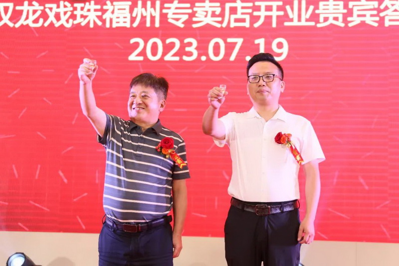 盛世之夏,酒林飄香。7月19日,雙龍戲珠福州六一路專(zhuān)賣(mài)店隆重開(kāi)業(yè)!福建雙龍戲珠酒業(yè)有限公司總經(jīng)理黃盛堯、福州天福榮貿(mào)易有限公司總經(jīng)理陳建榮等出席開(kāi)業(yè)慶典并致辭。