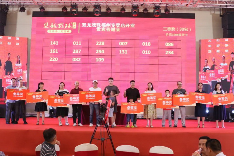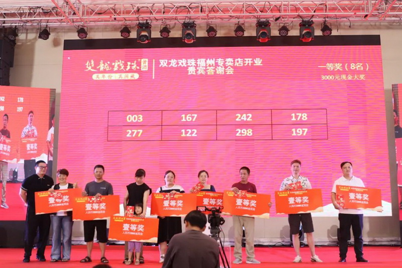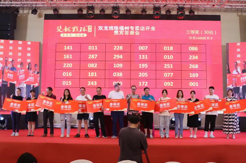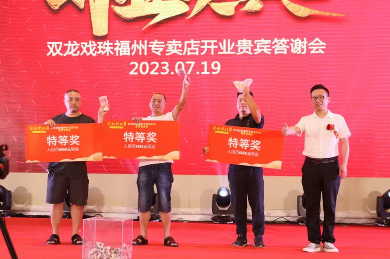伴隨著雙龍戲珠福州六一路專(zhuān)賣(mài)店的盛大開(kāi)業(yè),答謝晚宴上,福建雙龍戲珠酒業(yè)有限公司總經(jīng)理黃盛堯、福州天福榮貿(mào)易有限公司總經(jīng)理陳建榮進(jìn)行致辭,對(duì)現(xiàn)場(chǎng)數(shù)百名來(lái)賓的到來(lái)表達(dá)了衷心的感謝和熱烈的歡迎。