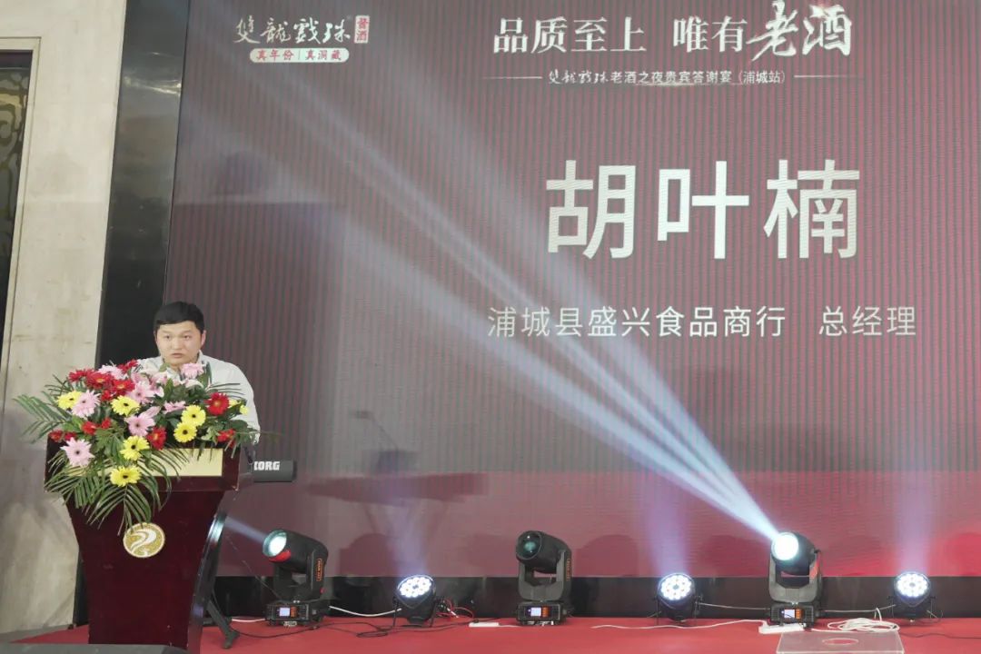 浦城縣盛興食品商行總經(jīng)理胡葉楠在致辭中感謝大家的出席,他表示浦城市場的發(fā)展離不開大家的支持,我們舉辦答謝宴,在品鑒高品質(zhì)老酒之際,也想借此機(jī)會加強(qiáng)彼此之間的聯(lián)系,讓各位朋友、伙伴體驗(yàn)醬香之美,共贏美好未來!