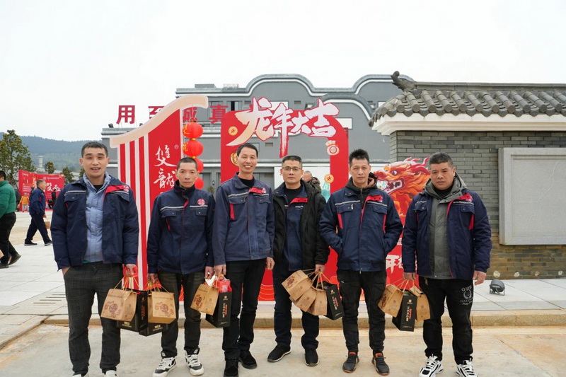 卯兔辭歲,辰龍迎新!為答謝全體員工一年來(lái)的辛勤付出,迎接嶄新的一年,1月26日,吉祥中國(guó)龍 雙龍戲珠酒——雙龍戲珠酒業(yè)年夜飯活動(dòng)在雙龍戲珠桐源基地隆重舉行。公司領(lǐng)導(dǎo)、貴賓、全體員工及家屬歡聚一堂,其樂(lè)融融,共同慶賀新一年的到來(lái)!