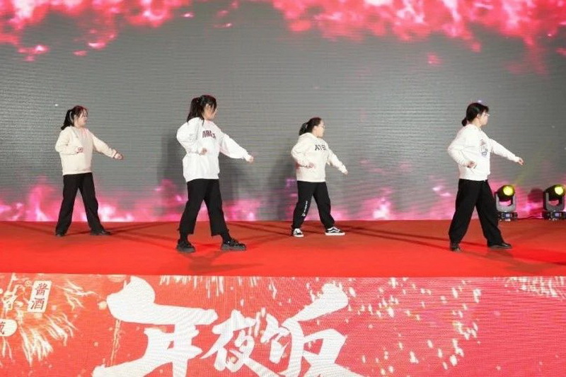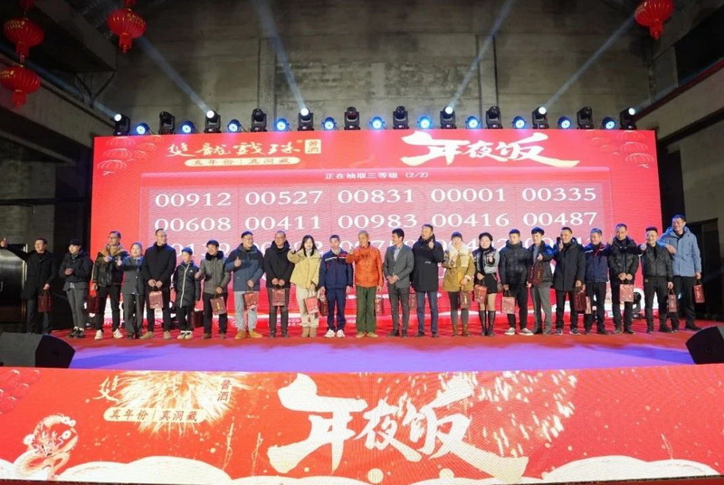 相聚的時(shí)光令人難忘,雙龍戲珠酒業(yè)年夜飯?jiān)跓熁ū硌莸臍夥罩新湎箩∧?,雙龍人們滿懷期望,攜手共赴2024新征程。