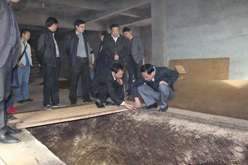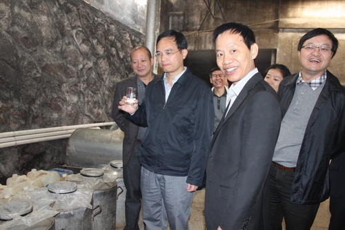 2012年11月6日南平市市長(zhǎng)林寶金到公司指導(dǎo)工作,林市長(zhǎng)一行參觀了釀造車(chē)間,向總經(jīng)理馮敏了解泥窖發(fā)酵工藝特點(diǎn),參觀了貯酒山洞—雙龍洞、酒文化展示廳。