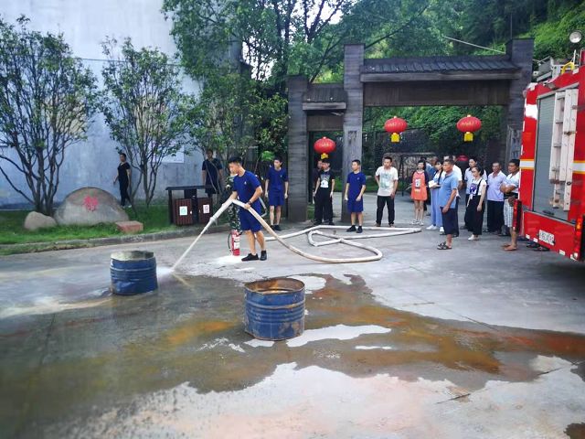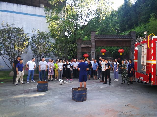 建甌消防支隊于2019年7月18日下午15點(diǎn)在雙龍戲珠酒業(yè)廠區(qū)內(nèi)指揮廠區(qū)員工做消防演習(xí)動員。