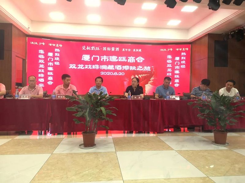 2020年6月20日,福建雙龍戲珠酒業(yè)有限公司邀請(qǐng)廈門(mén)市建甌商會(huì)林松華會(huì)長(zhǎng)等一行30多位企業(yè)家到我司參觀,開(kāi)展“雙龍戲珠洞藏酒探秘之旅”活動(dòng)。此次回鄉(xiāng)之旅受到建甌市委、市政府的高度重視,建甌市委常委、市委副書(shū)記楊鑾,市委常委、統(tǒng)戰(zhàn)部部長(zhǎng)傅曉雄,建甌市人大副主任,市委辦主任葉華等領(lǐng)導(dǎo)出席會(huì)議并進(jìn)行了深入的座談交流。