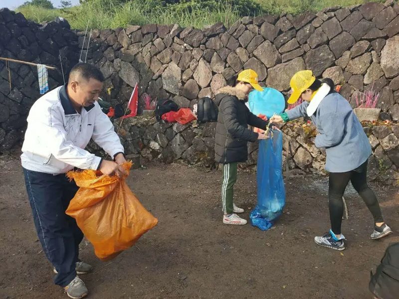 從山腳出發(fā),隊員們沿路感受山清水秀的美麗風光,同時安置新路牌、清理白色垃圾,踐行“綠色登山,環(huán)保出行”的主題。