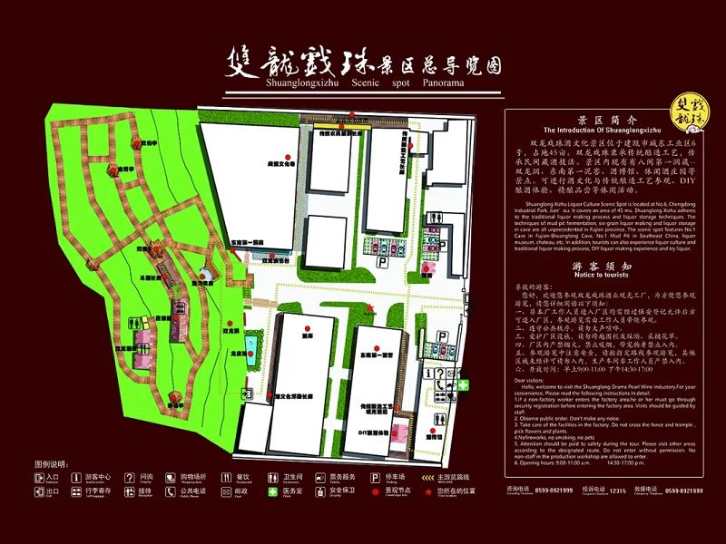 雙龍戲珠老酒廠在建設(shè)改造過程中充分結(jié)合觀光工廠建設(shè)理念,設(shè)施完善、環(huán)境優(yōu)美,是國家AAA級(jí)旅游景區(qū)。